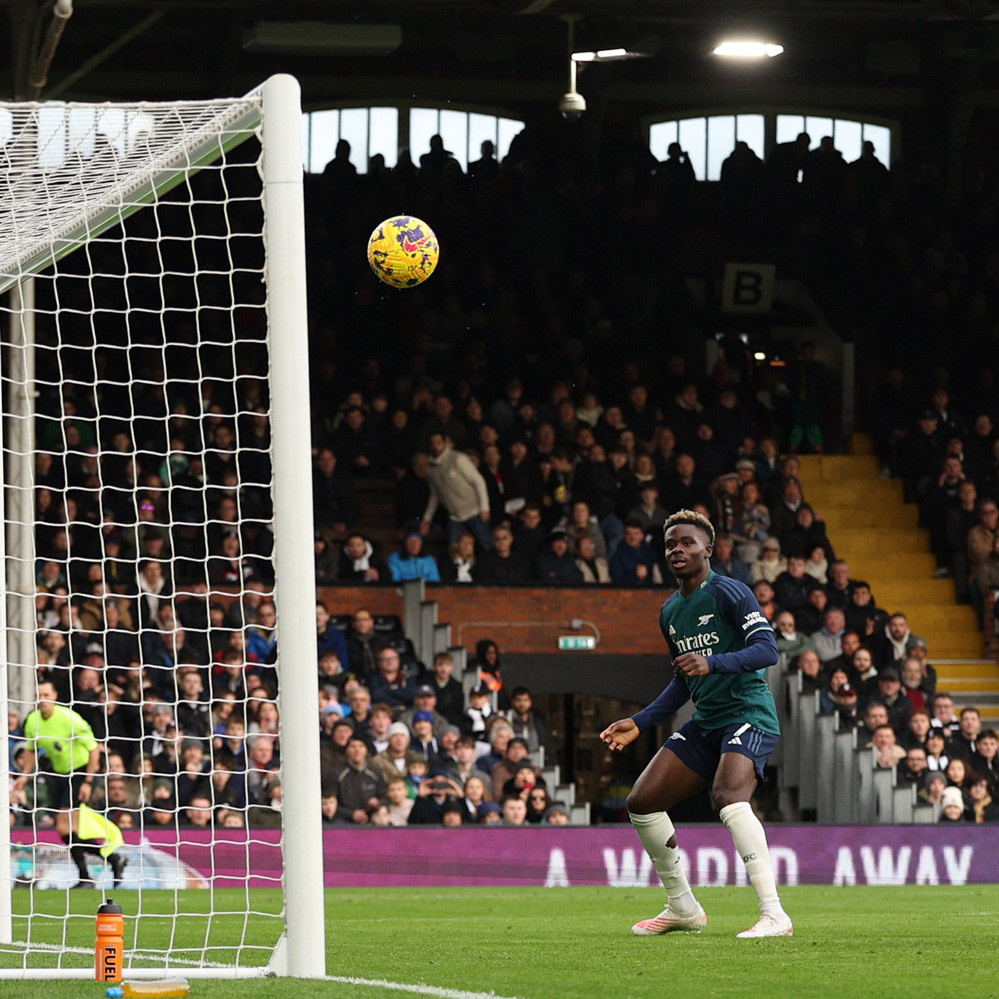 Fulham được hưởng quả đá phạt góc sút rộng ngay bên ngoài vòng cấm. Andreas Pereira cứa lòng kỹ thuật dội xà ngang khung thành Arsenal.