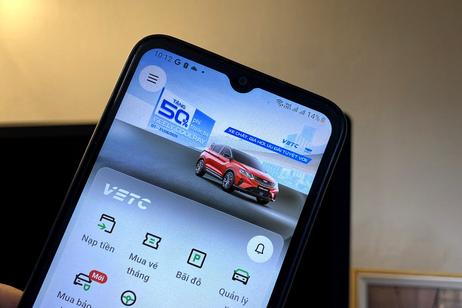 Bước 1: Đăng nhập vào ứng dụng VETC, chọn mục Thiết lập ví.