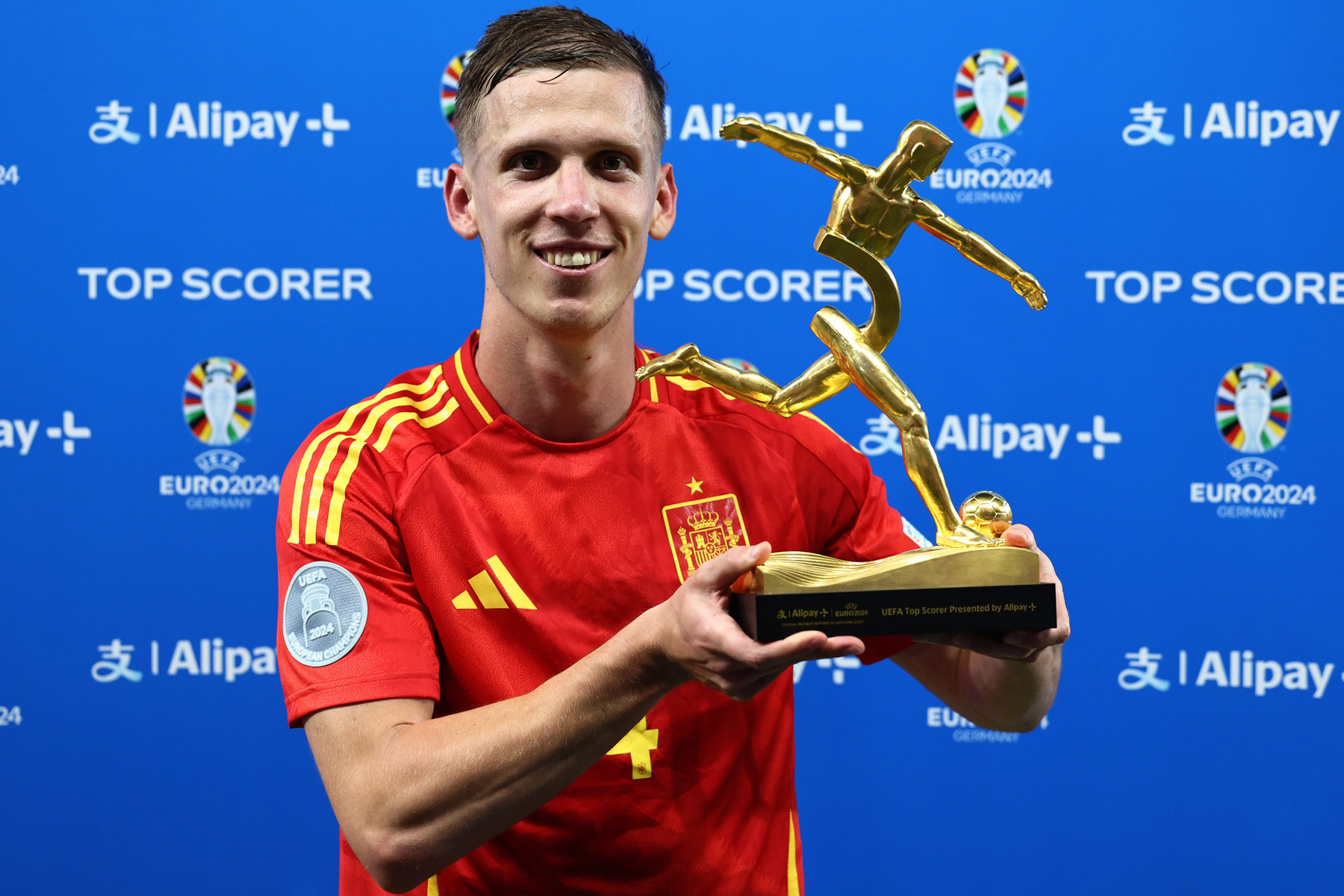 Dani Olmo có kỳ EURO 2024 rất nổi bật. Anh cùng với 5 người khác là Harry Kane, Mikautadze, Jamal Musiala, Cody Gakpo và Ivan Schranz chia sẻ danh hiệu Vua phá lưới.