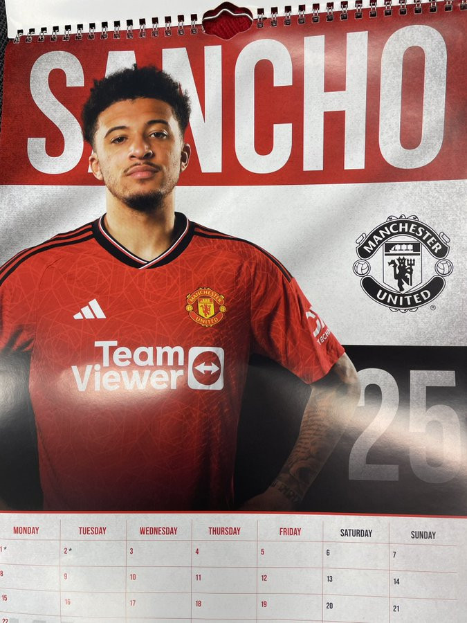 Trong lúc người hâm mộ mong thấy cảnh Jadon Sancho mau cuốn gói khỏi MU, chờ bình minh mới dưới thời tỷ phú hóa dầu, đã không khỏi sốc khi phát hiện anh chính là ngôi sao trang bìa tháng 1 trong bộ lịch 2024 của CLB.