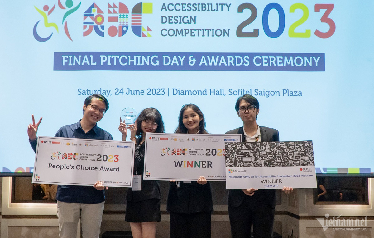 Nhóm sinh viên này cũng vừa xuất sắc giành chiến thắng cuộc thi “Microsoft APAC AI for Accessibility Hackathon 2023” tại Việt Nam. Đây là cuộc thi do Microsoft tổ chức tại châu Á – Thái Bình Dương nhằm tìm kiếm những sáng kiến sử dụng trí tuệ nhân tạo giúp cải thiện hoạt động trong cuộc sống hằng ngày của người khuyết tật.