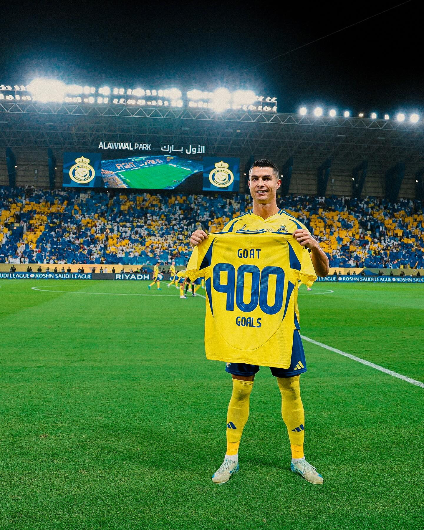 Như thường lệ, Cristiano Ronaldo luôn là tâm điểm mỗi khi ra sân dù anh đã ở tuổi 39. Ở trận tiếp đón đối thủ khó chơi Al Ahli thuộc vòng 3 Saudi Pro League 2024/25, chân sút người Bồ Đào Nha có dịp khoe chiếc áo với con số 900 bàn thắng cùng dòng chữ “GOAT” trước toàn thể người hâm mộ Al Nassr.