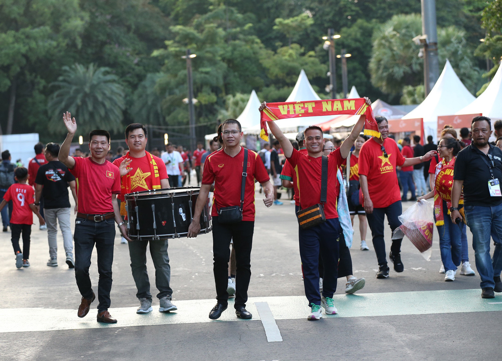 CĐV Việt Nam đến sân Gelora Bung Karno tiếp lửa thầy trò HLV Troussier (Ảnh: L.T)