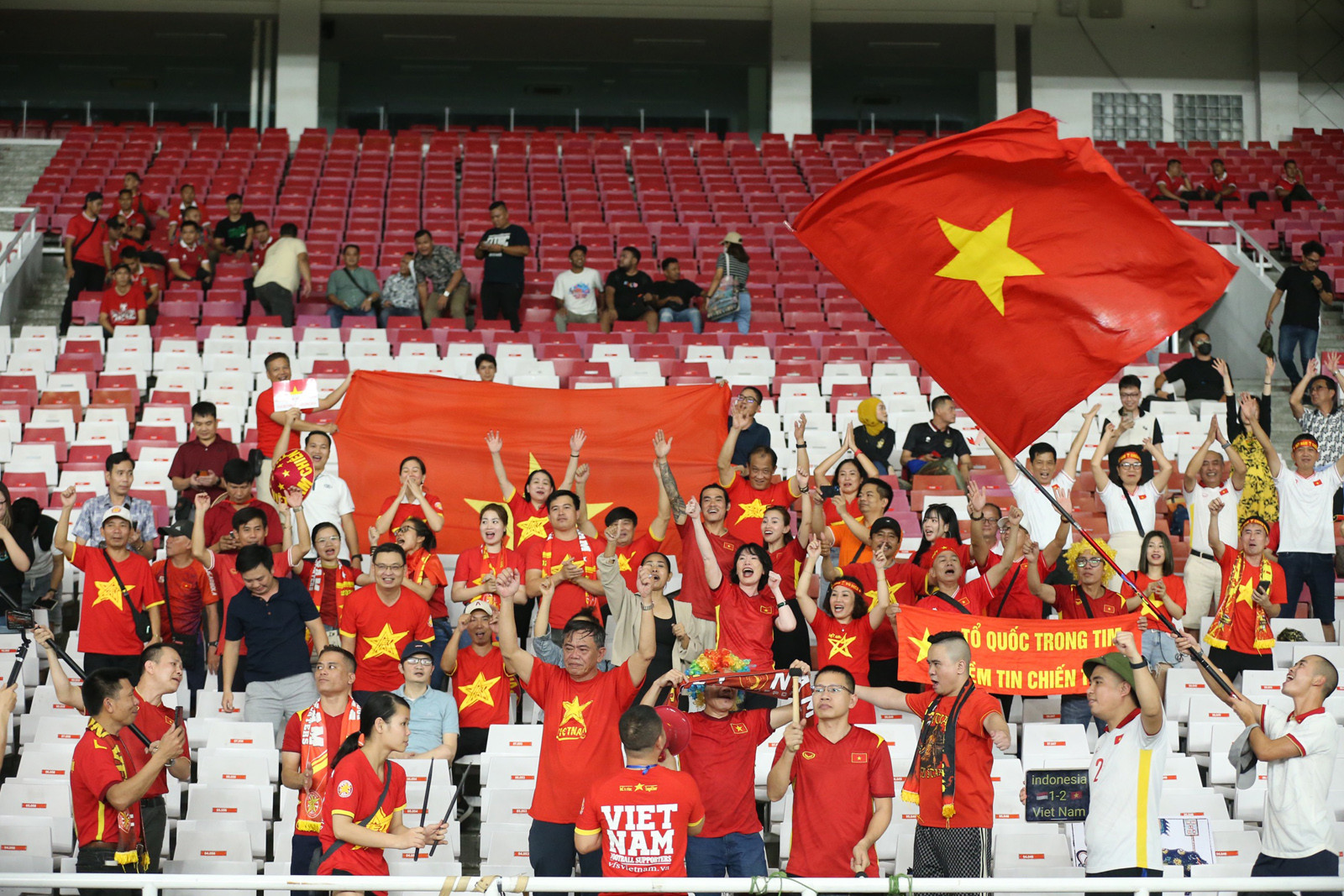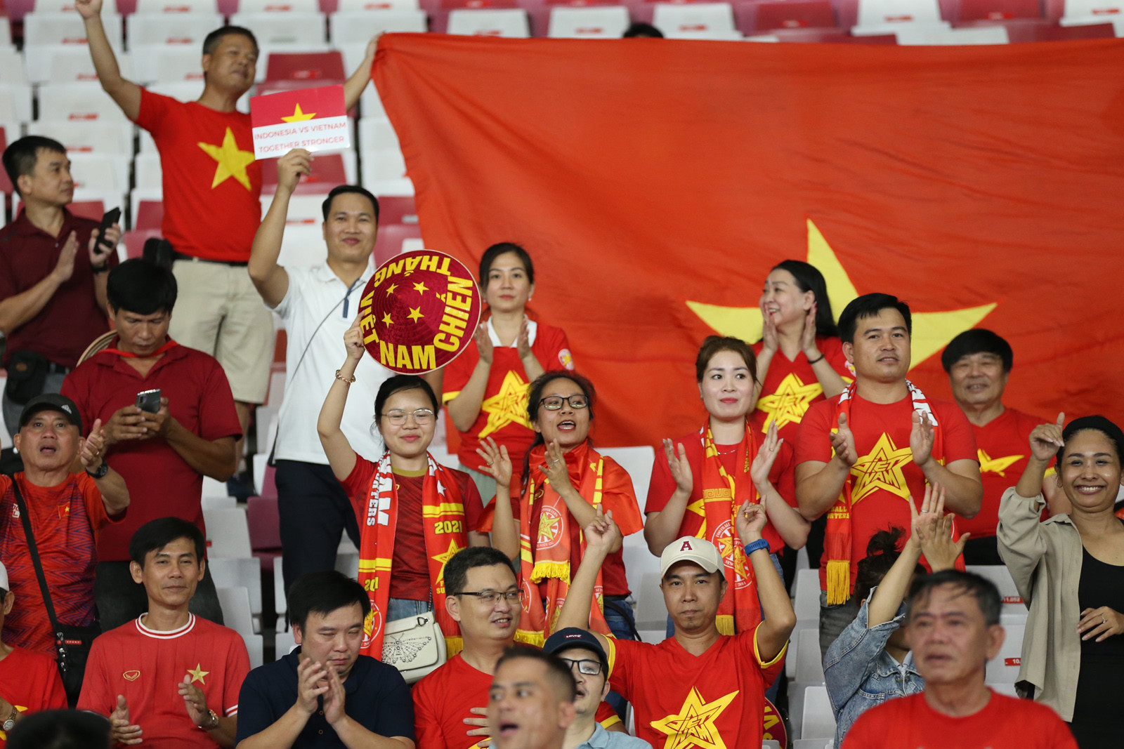 CĐV Việt Nam trên các khán đài sân Gelora Bung Karno (Ảnh: L.T)