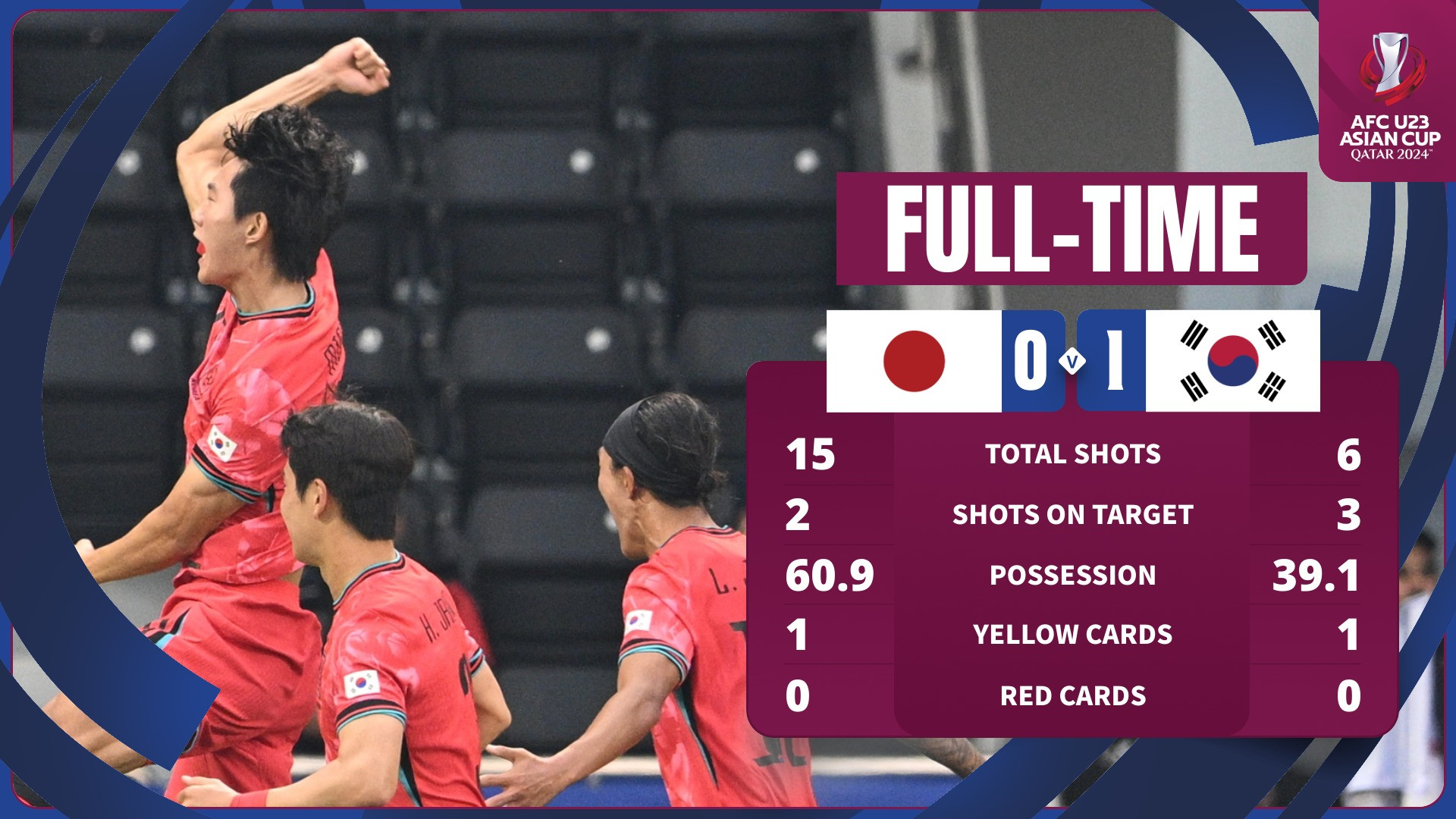 Trận đấu kết thúc với chiến thắng có phần bất ngờ 1-0 dành cho U23 Hàn Quốc. Đội bóng xứ Kim chi với ngôi đầu bảng B sẽ đối đầu thú vị với U23 Indonesia của HLV Shin Tae Yong, trong khi Nhật Bản chạm trán chủ nhà Qatar.